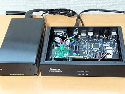 OCXOに交換した光メディアコンバーターを使って接続して音質を向上することも可能です。